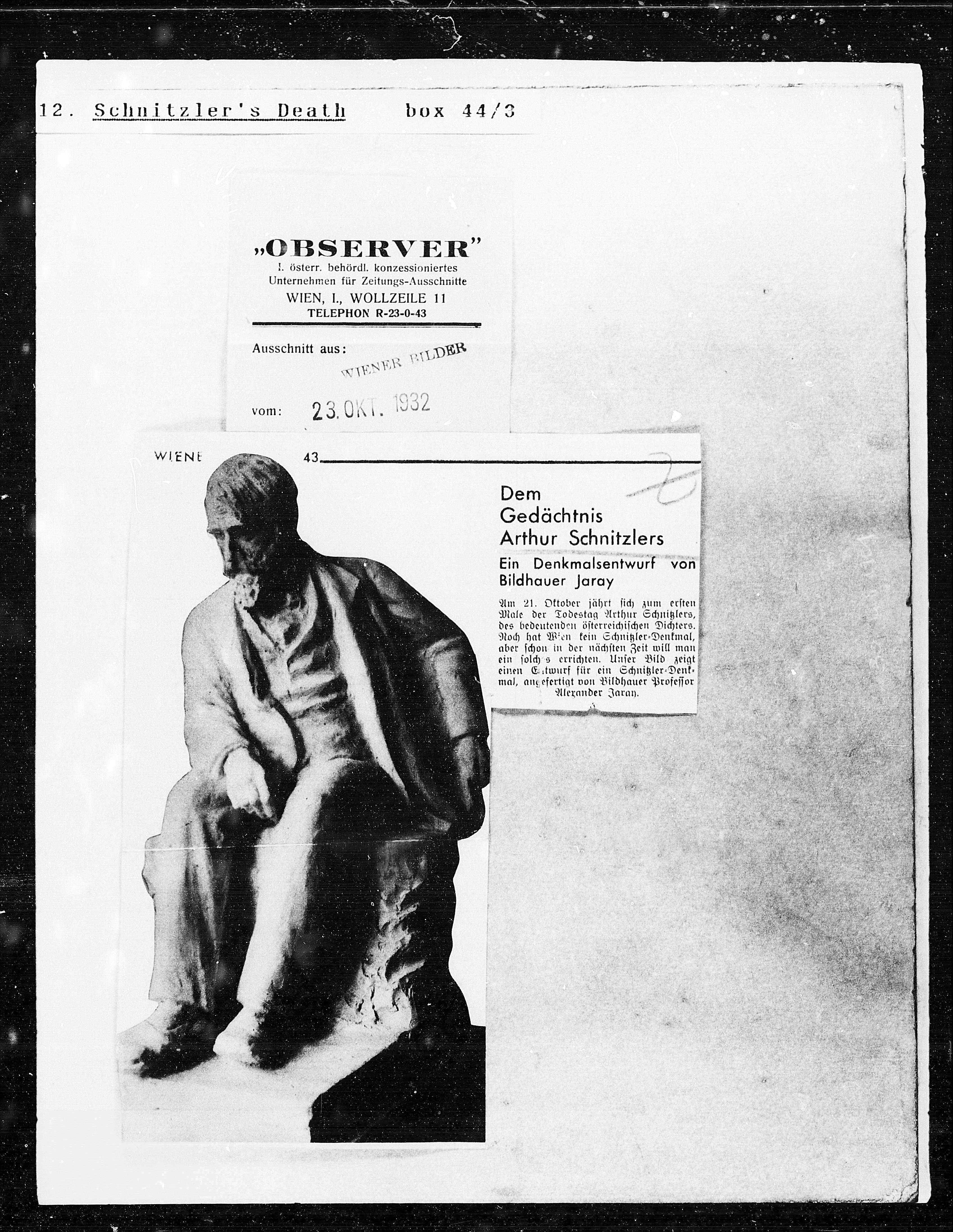 Noch hat Wien kein Schnitzler=Denkmal, Noch hat Wien kein Schnitzler=Denkmal,