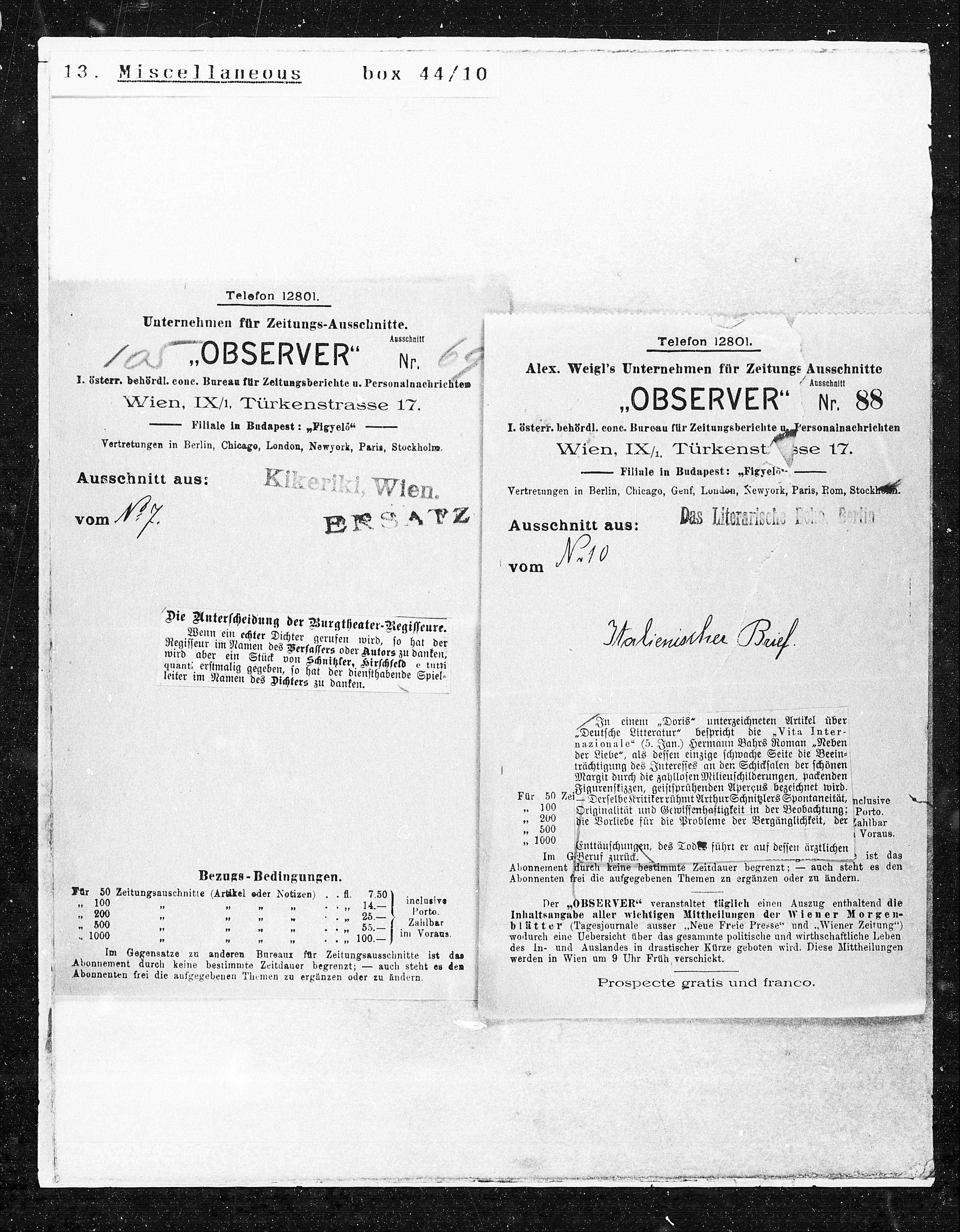 Alex. Weigls Unternehmen für Zeitungs Ausschnitte